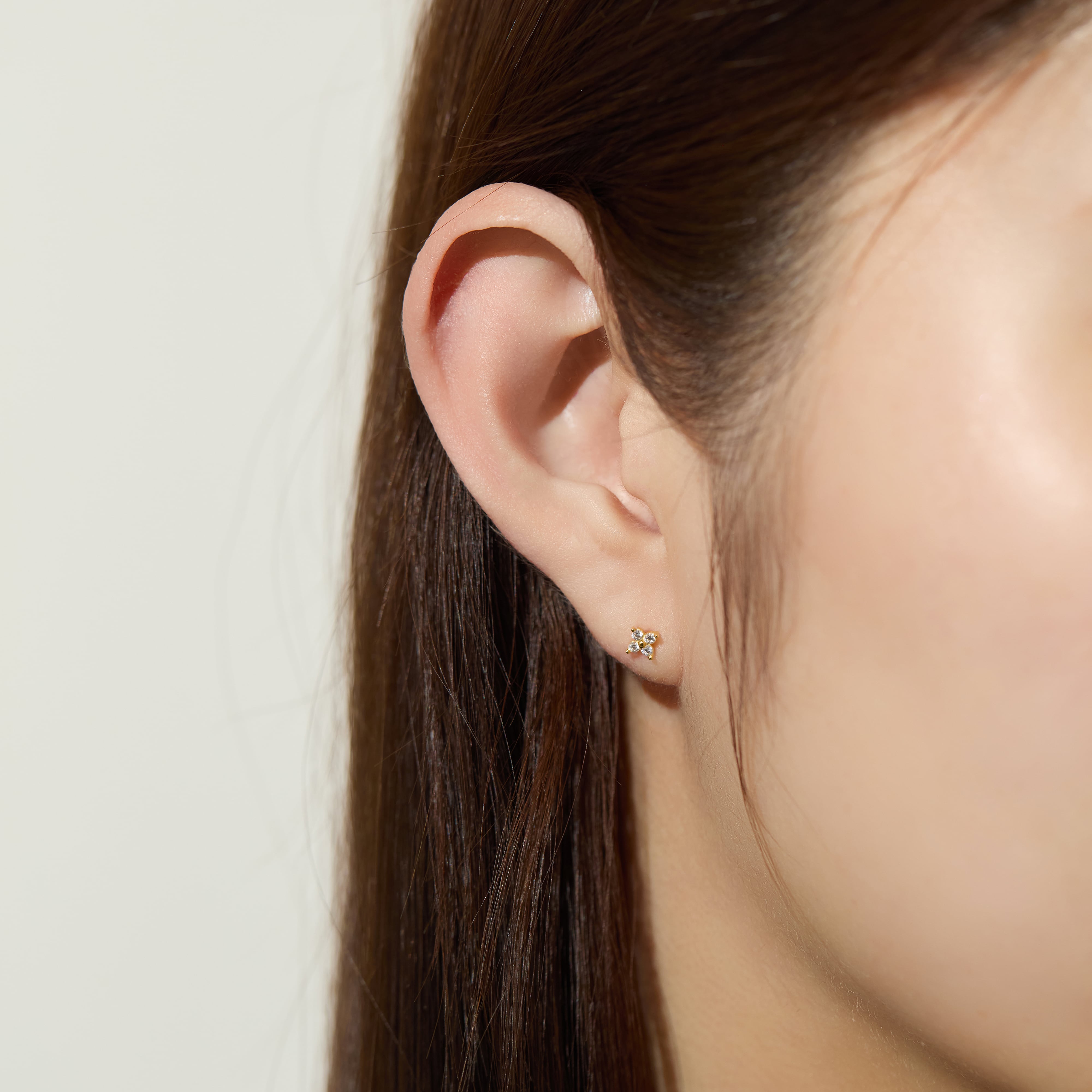 小粒な花型のキュービックジルコニアのダイヤモンドピアス。