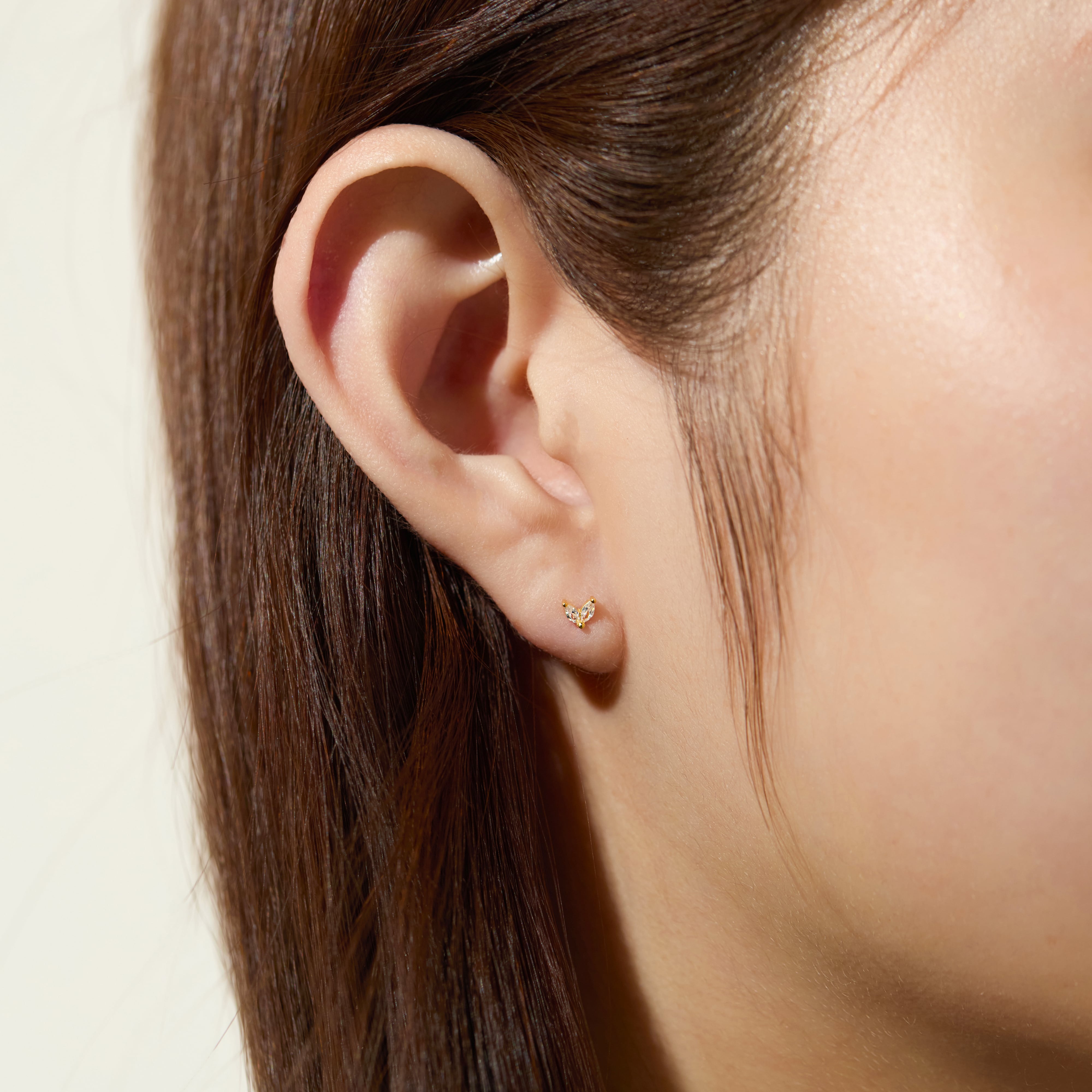 リーフ型のキュービックジルコニアのダイヤモンドピアス。